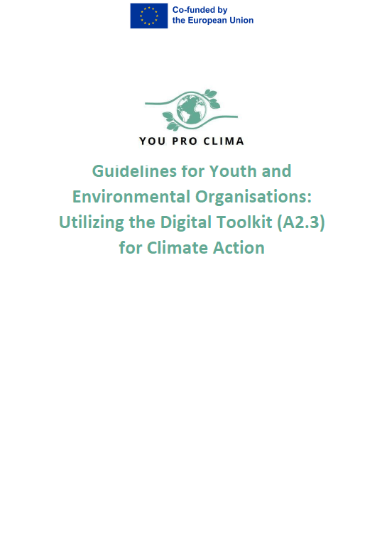 The “Guidelines for Youth and Environmental Organisations” is a practical resource developed as part of WP2 (A2.5) within the YOUproClima project to help youth workers and environmental organisations engage young people in climate action. It offers step-by-step guidance on using the project’s Digital Toolkit to foster awareness, develop skills, and support youth-led environmental initiatives through non-formal education.