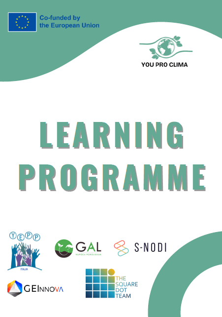The YouProClima Learning Programme is an interactive educational guide designed as part of WP3 (A3.1) for youth workers and young people across Europe to promote climate action through hands-on activities. It offers workshops, roleplays, simulations, and creative tasks that build skills in community engagement, project planning, EU environmental policy, and digital communication. The programme empowers participants to investigate local environmental challenges, design solutions, and take meaningful action in their communities.